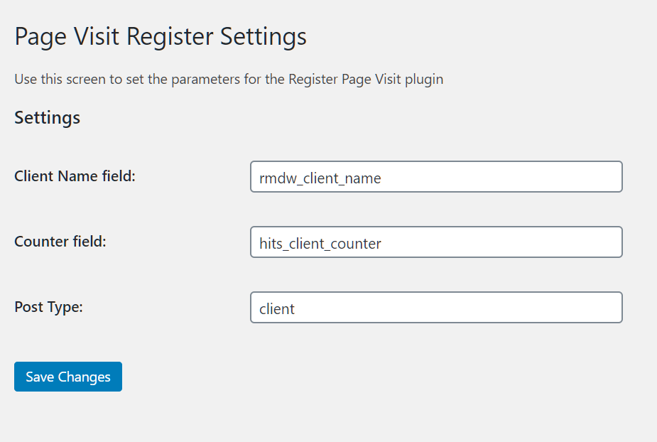 3. There is a settings page in the backend so you can set the fields and the name of the custom post type you want to use: